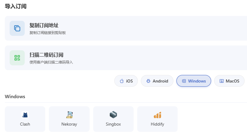 点击导入订阅,复制订阅地址(也可点击下方图标一键导入)